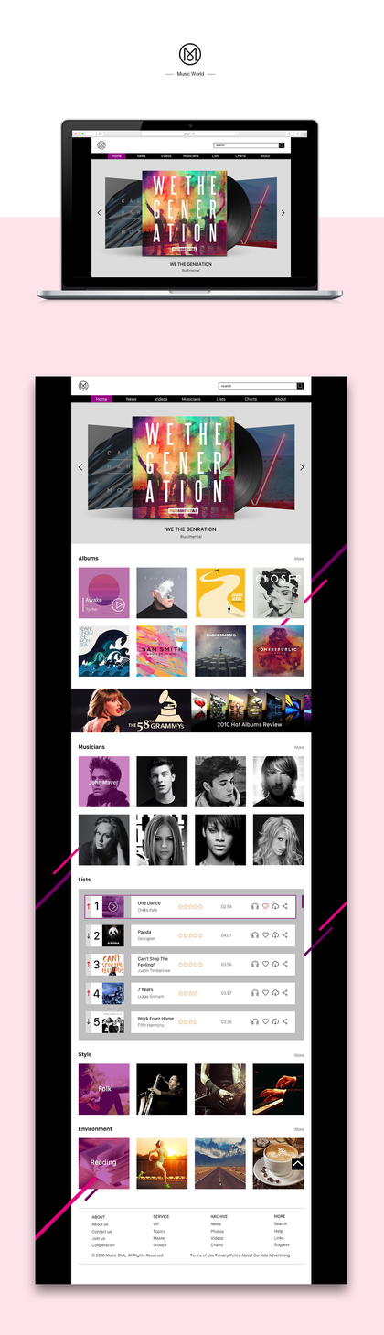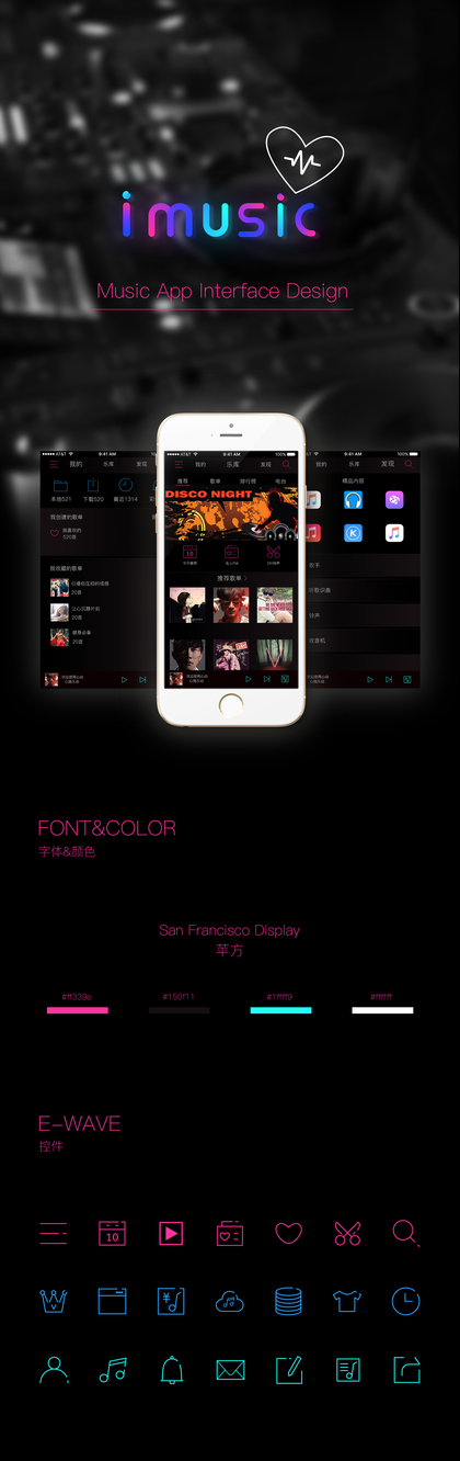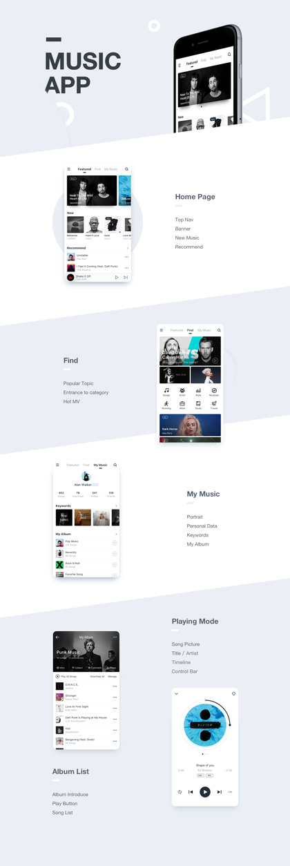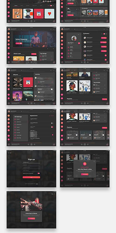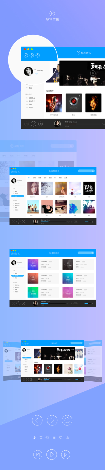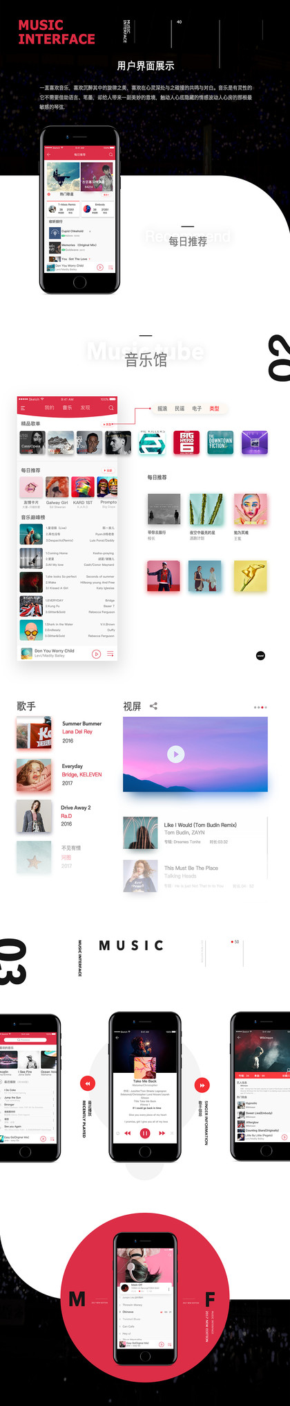 扁平时尚创意黑色音乐唱片播放器软件网页UI界面设计