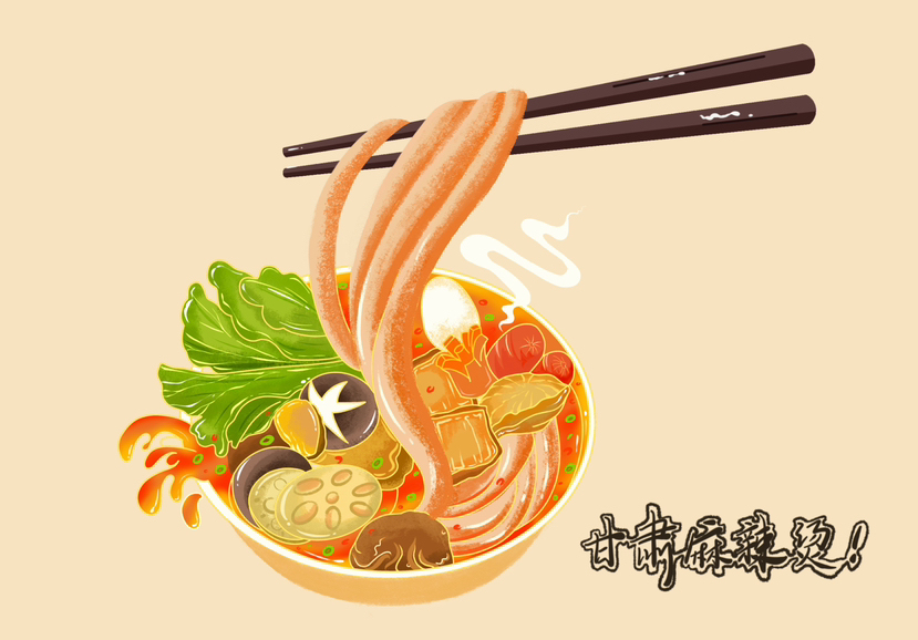 用ipad画了一堆重口麻辣食品,手绘菜单商业插画