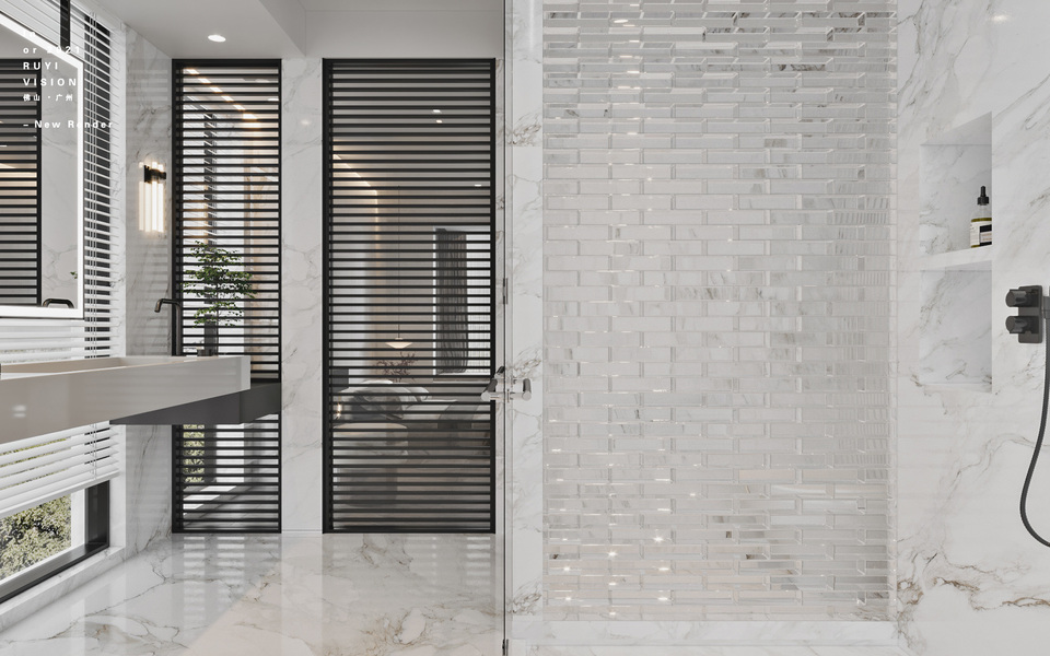 1992效果图现代家居别墅黑白灰客餐厅厨卫效果图