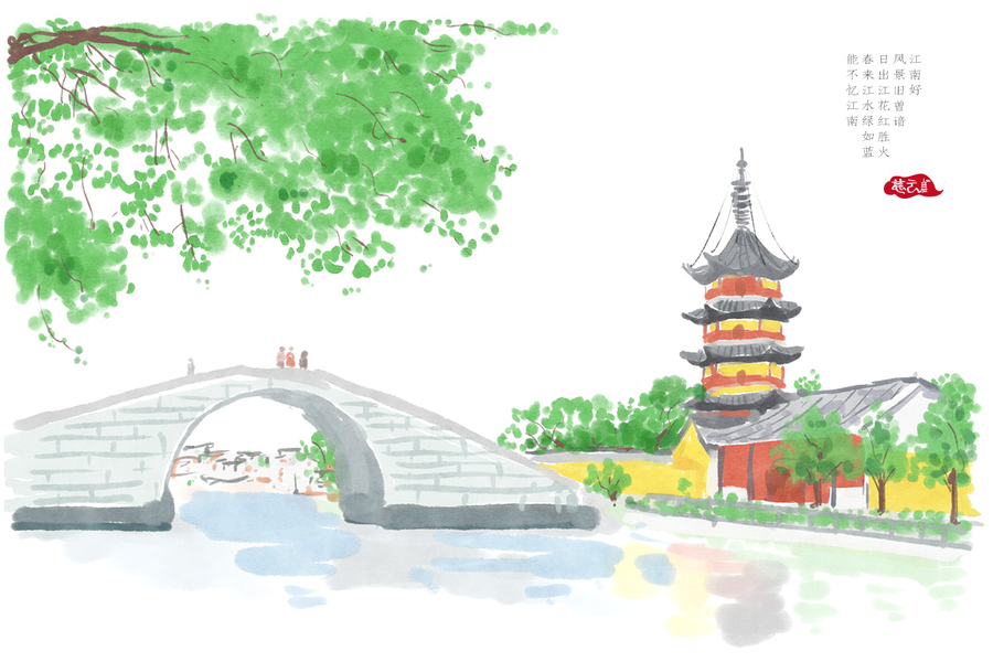 钢笔淡彩教程07,国风可以这样玩,带步骤图