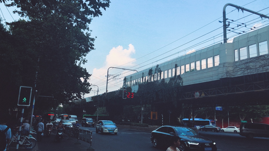 在地铁站等孩他娘,等的时间看到落日还不错就拍了