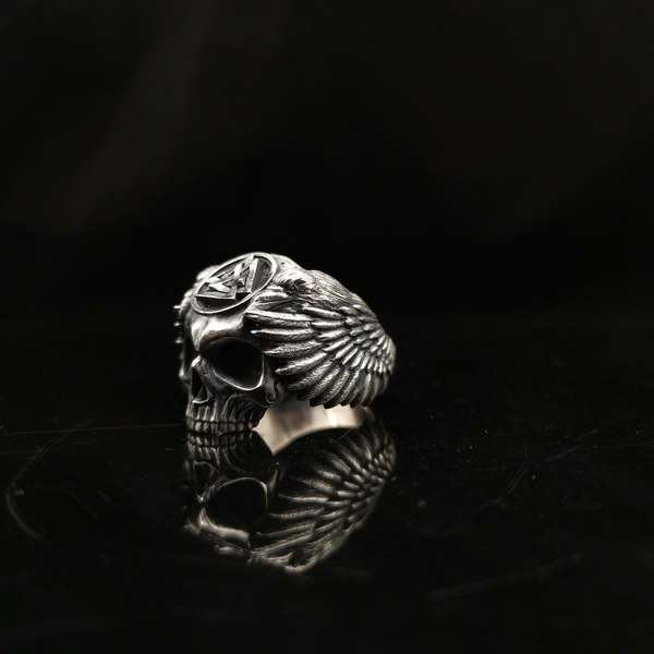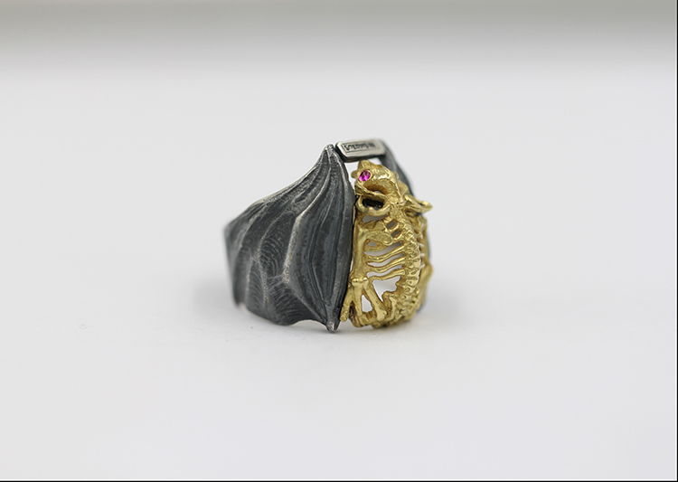 吸血蝙蝠骨骼戒指18k金925纯银手工男士戒指夸张