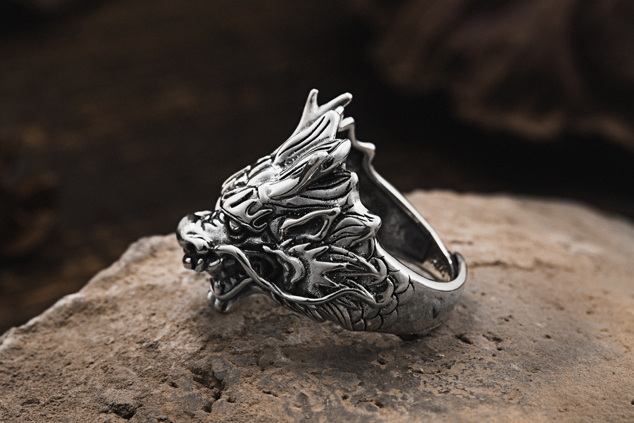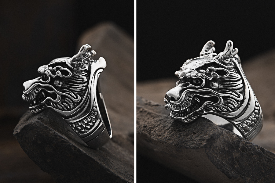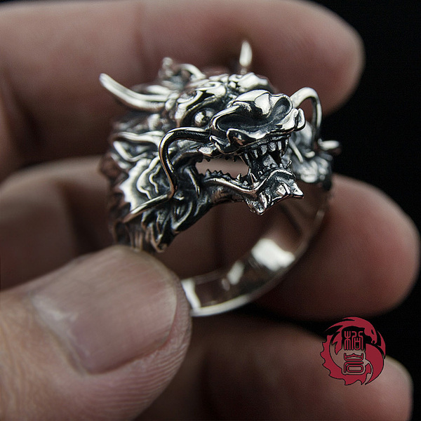 银匠显若手工雕蜡作品《龙》纯银戒指