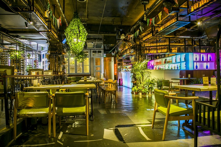 汉口老房子改装成巴厘龙虾餐厅的一组室内空间装饰