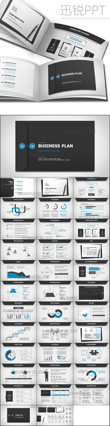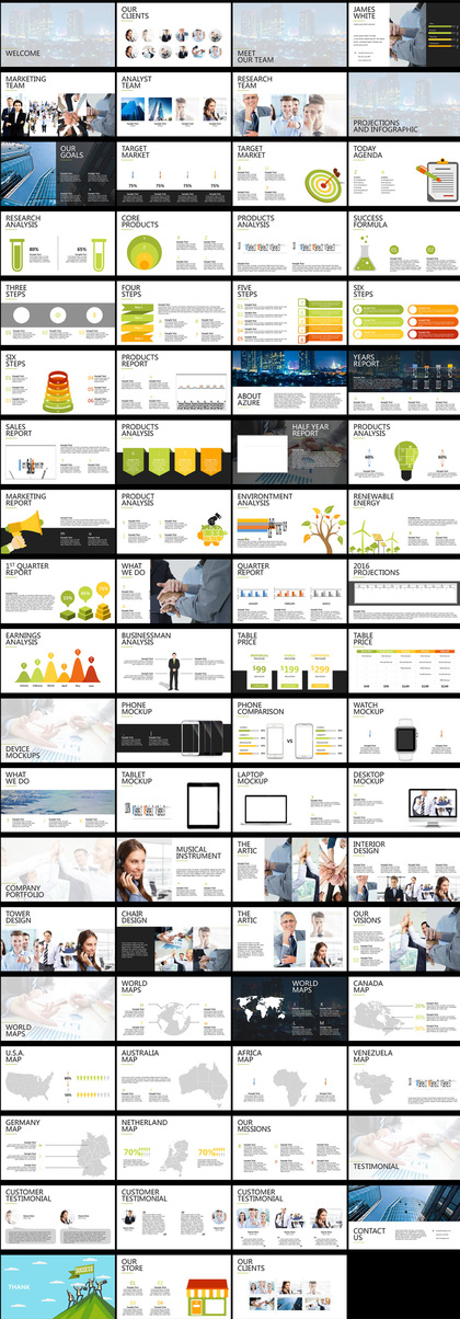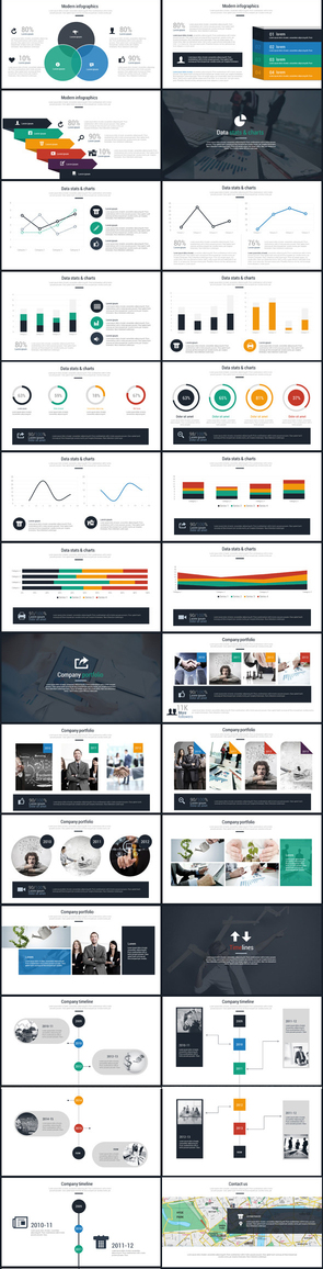 125页商务图形图标多种配色年终总结计划统计PPT模板