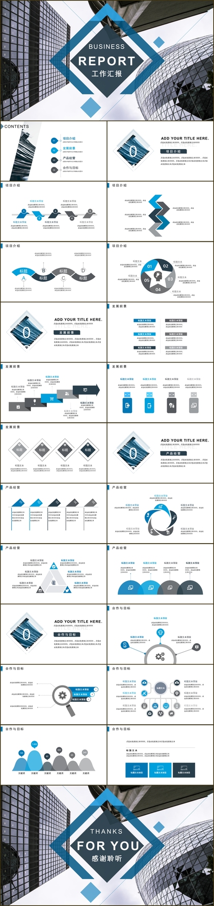 蓝色扁平化商务工作汇报计划总结项目展示PPT模板