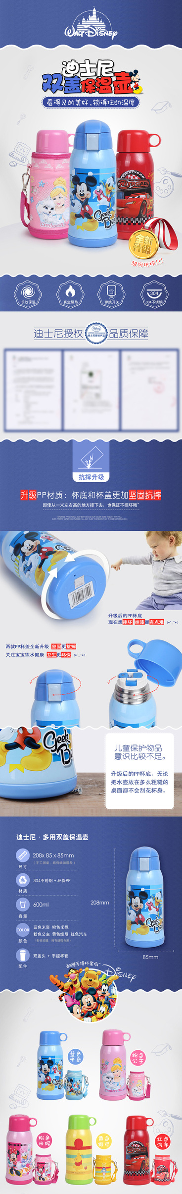 迪士尼卡通儿童 双盖多功能便携焖烧杯 米老鼠保温水壶