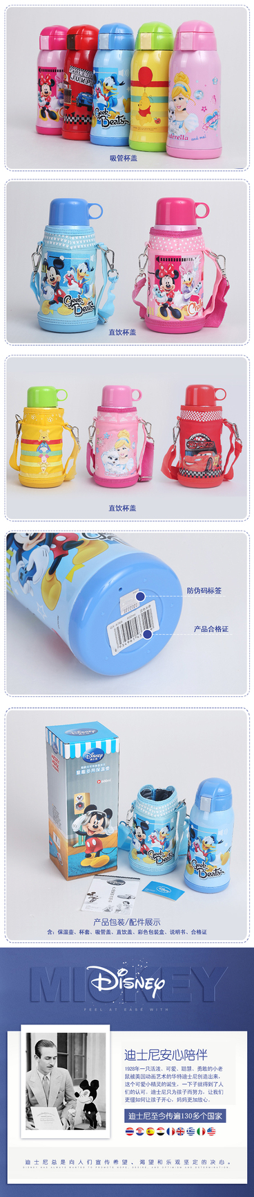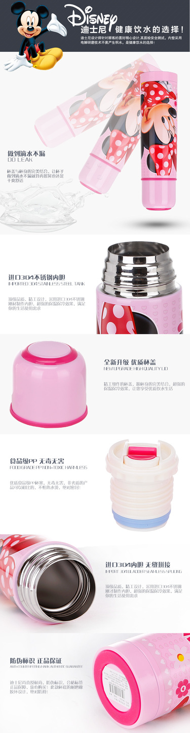中秋迪士尼情侣户外保温水壶 迪斯尼卡通儿童多功能便携 米老鼠保温水杯