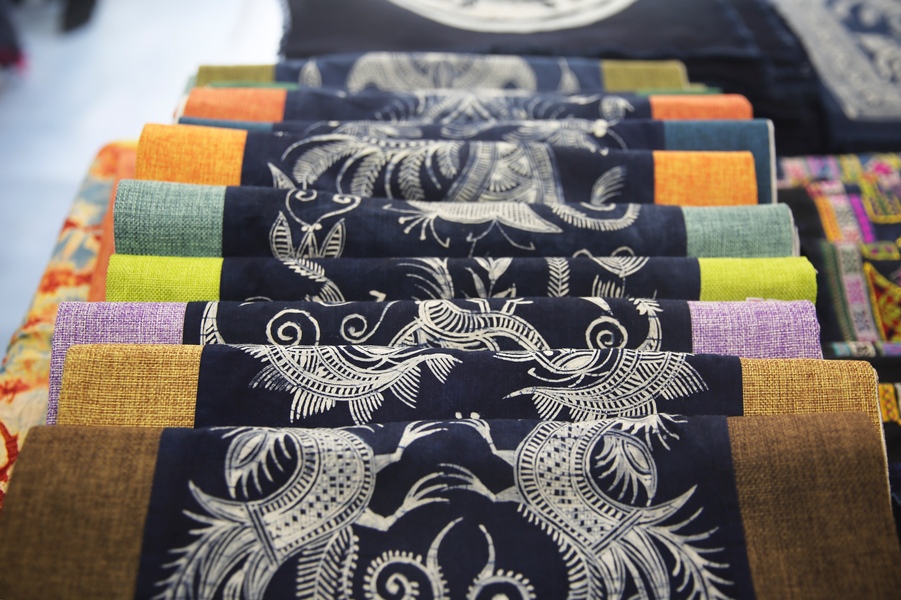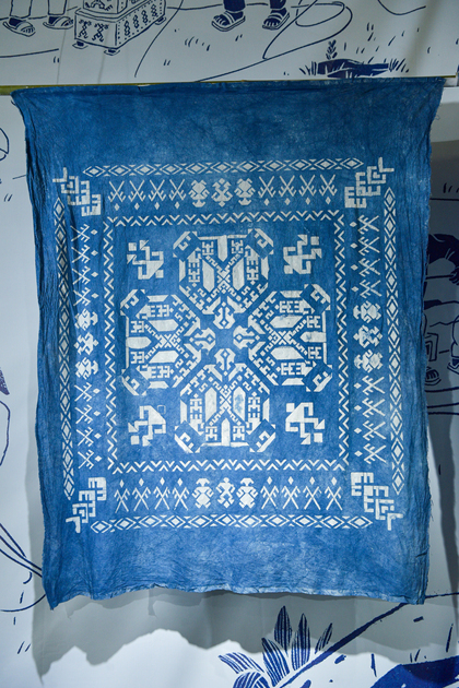 剪纸&蓝染跨界共创艺术装置《飞出五指山》