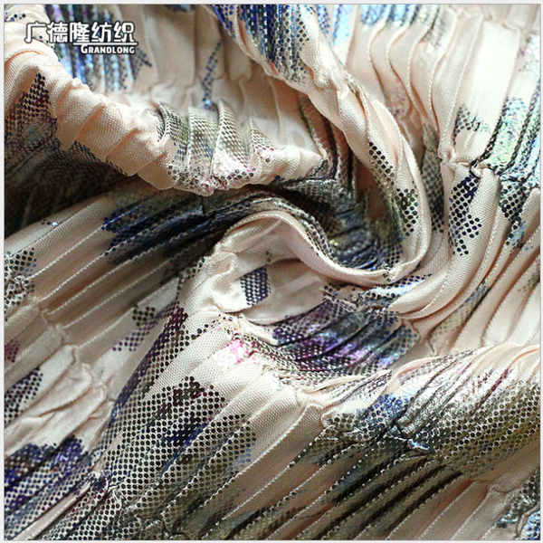 春秋新款广德隆纺织烫花压褶工艺服装面料百褶裙