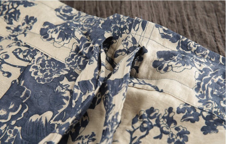 原创服装设计女装品牌【韵文】很宽松很亮眼的棉麻印花裤子