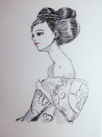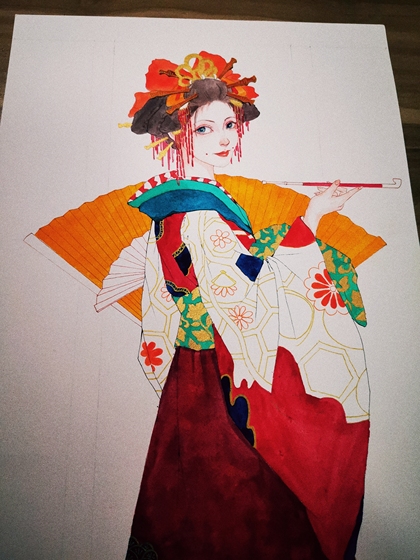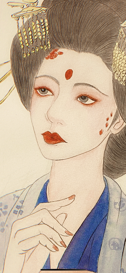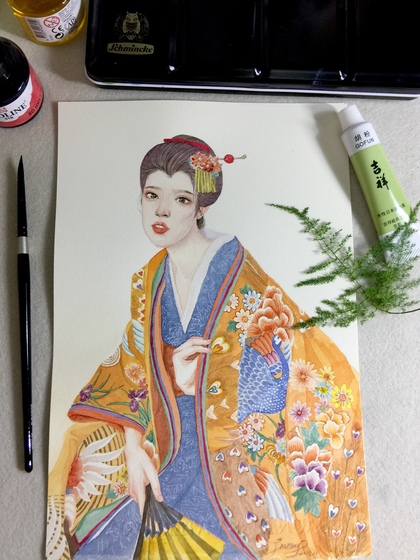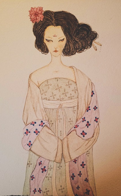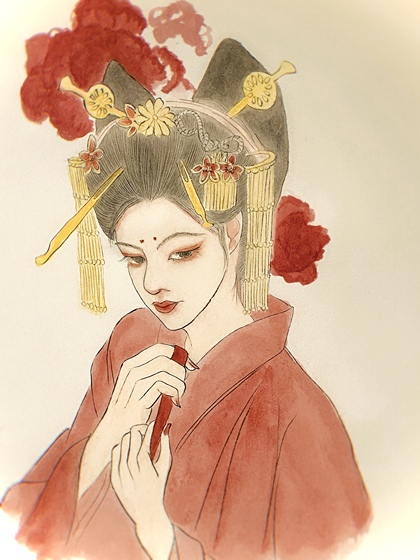 水彩插画恶女花魁