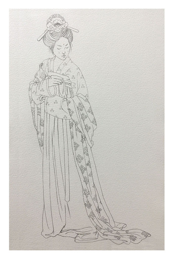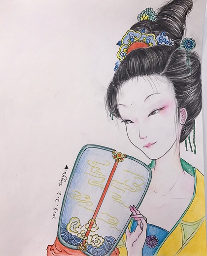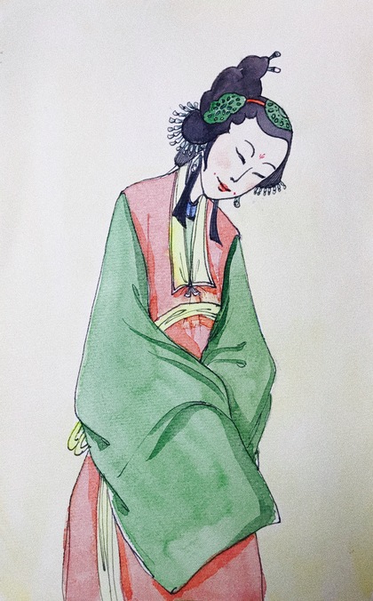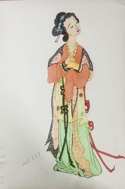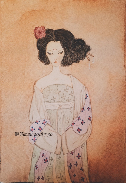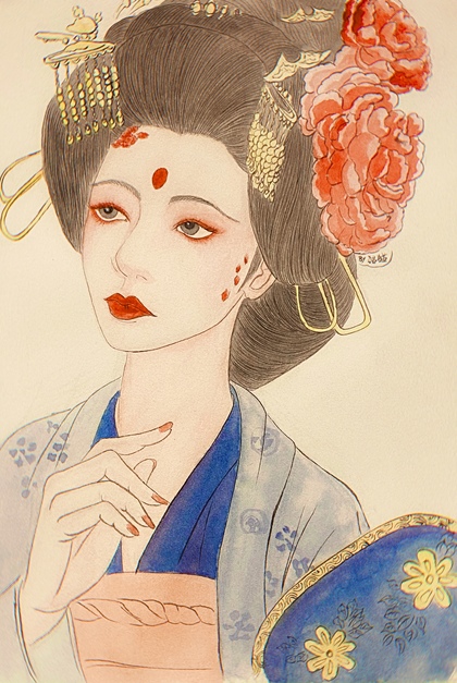 手绘水彩大唐仕女步骤图