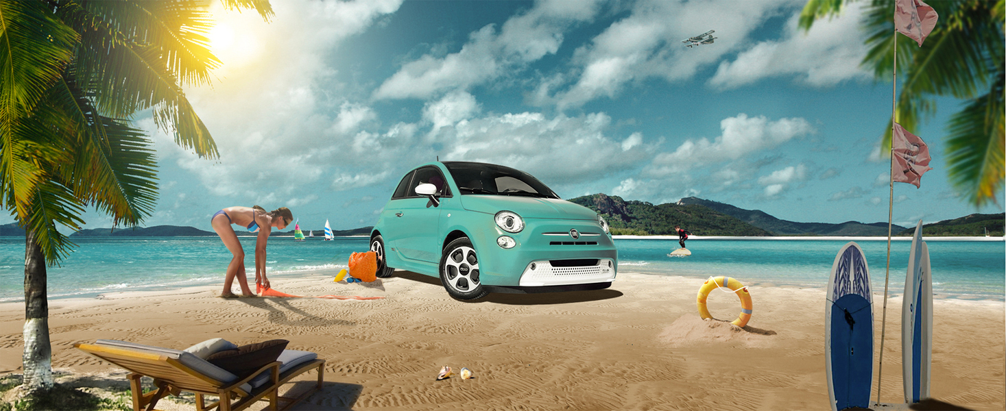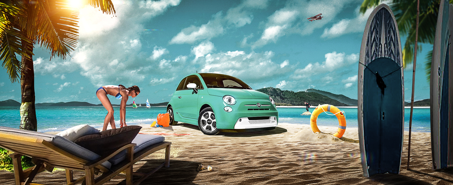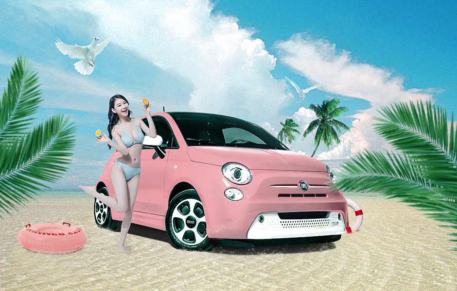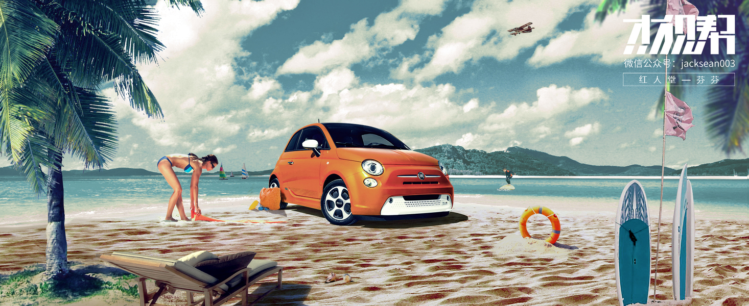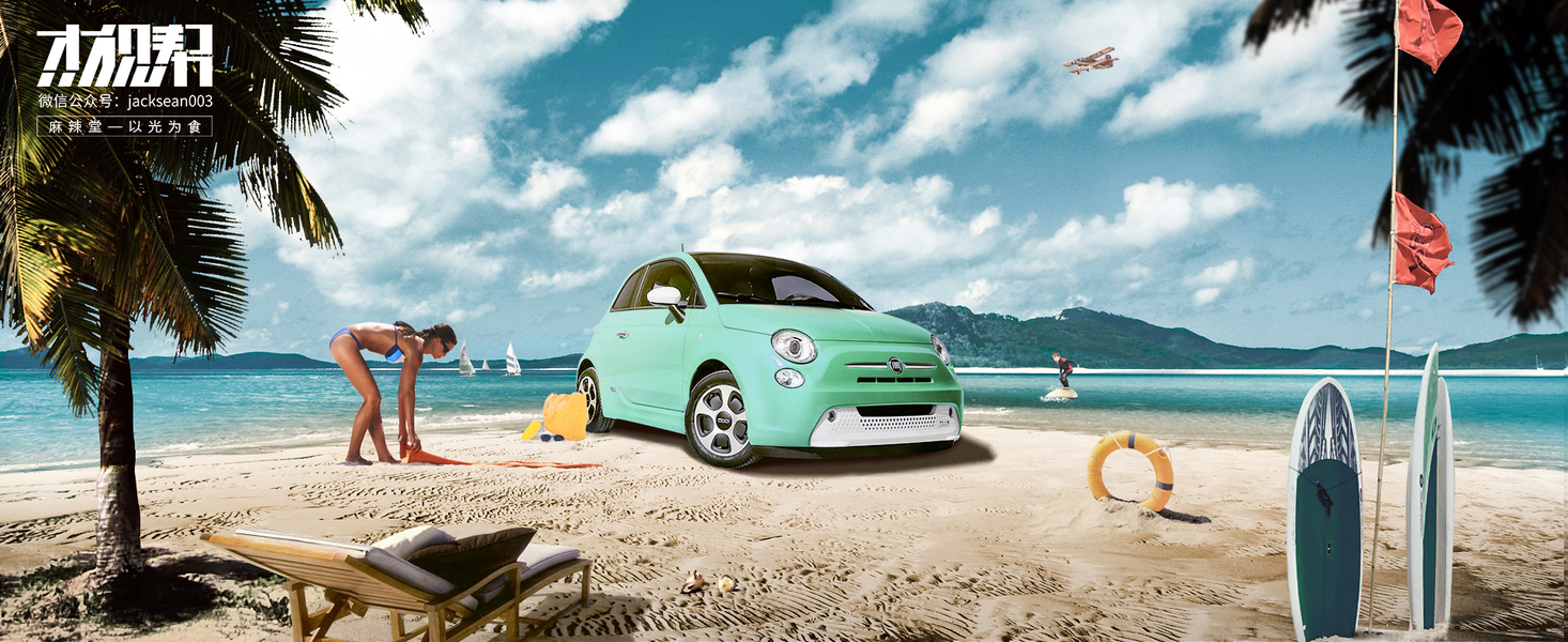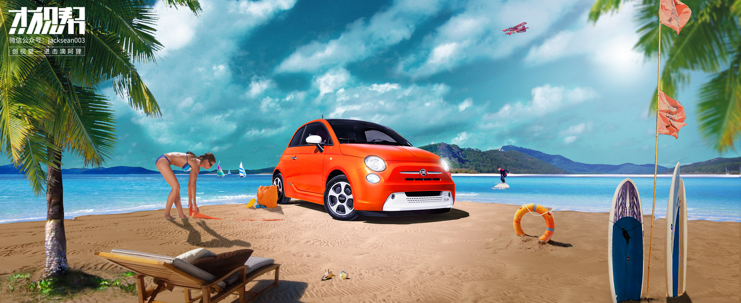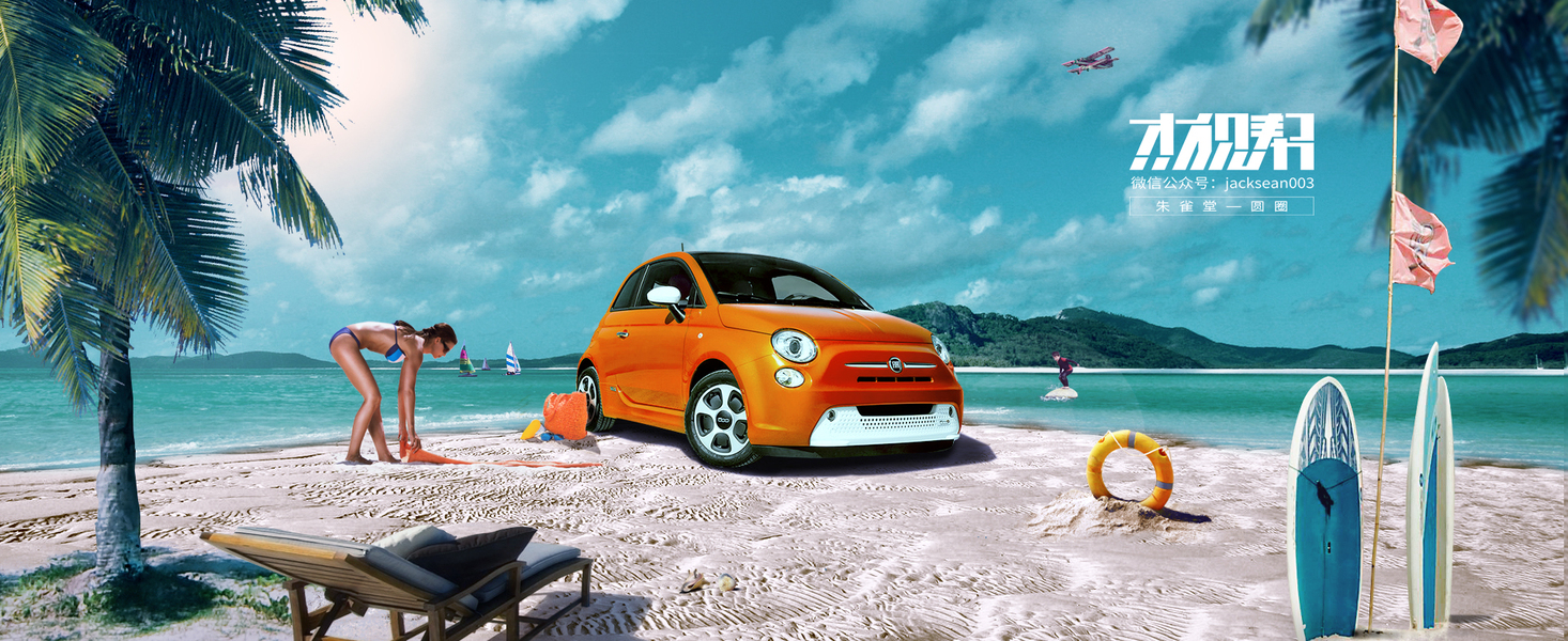沙滩上的小车ps合成