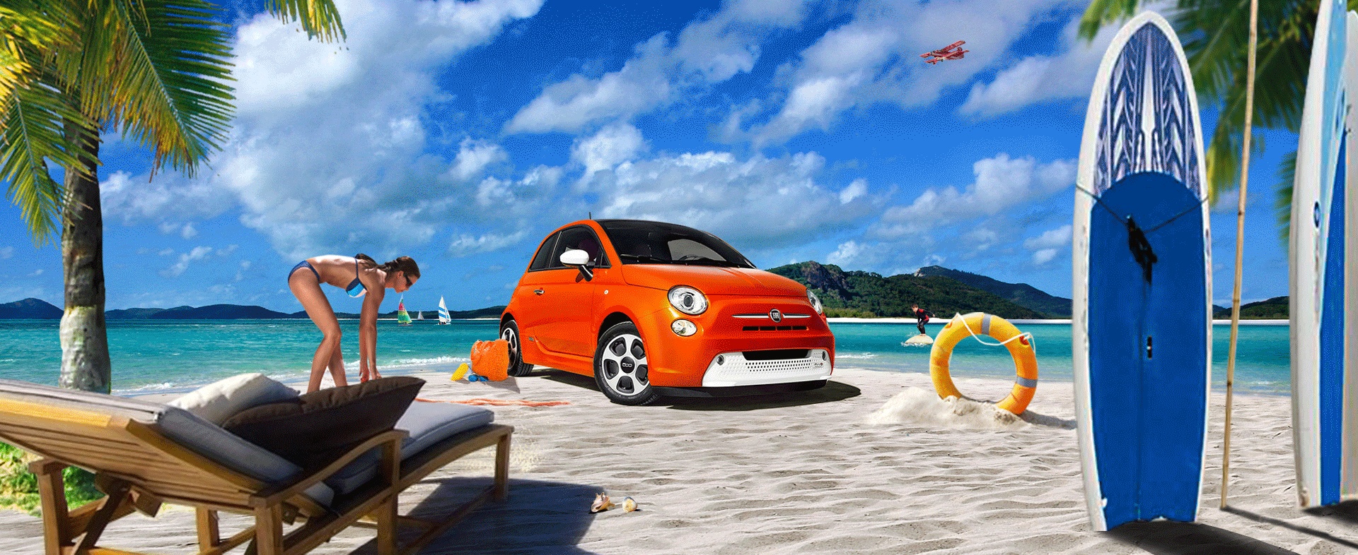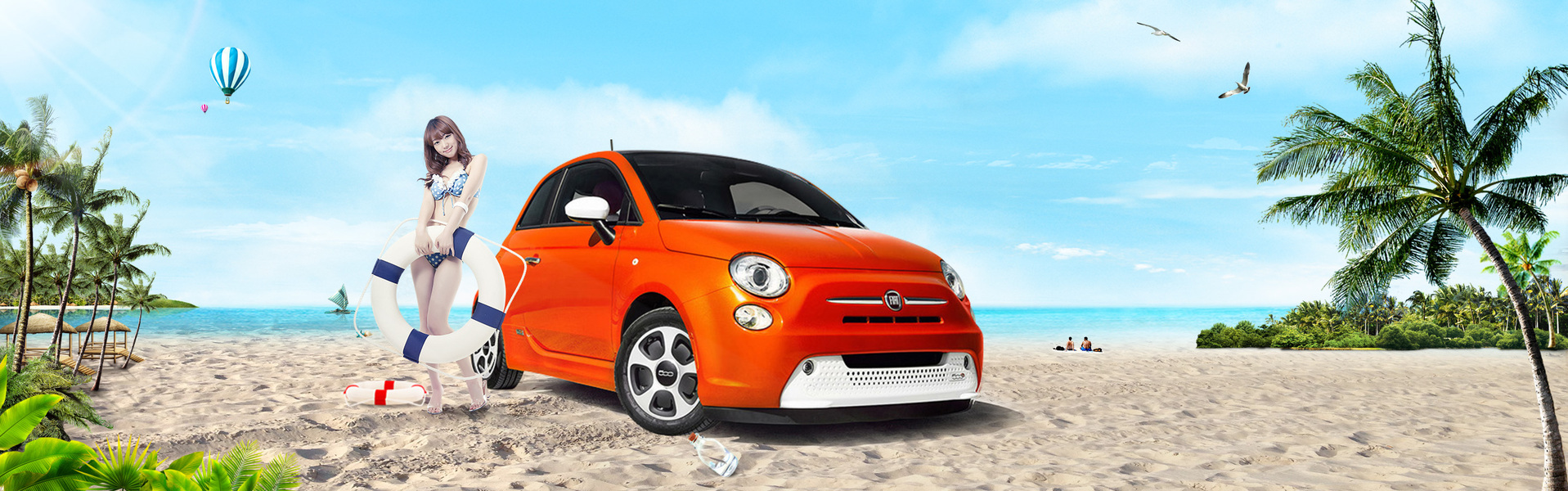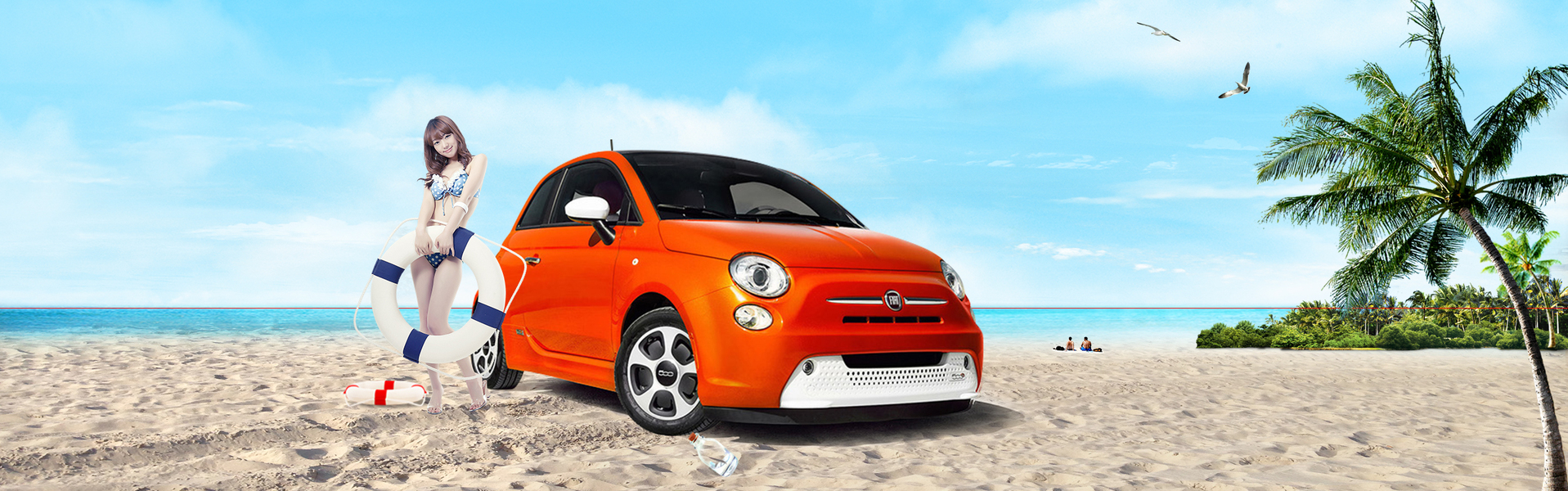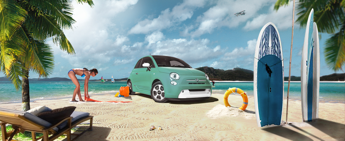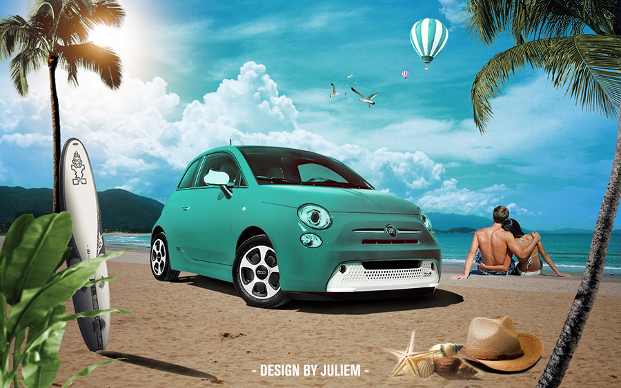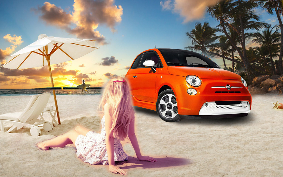 沙滩上的小车ps合成
