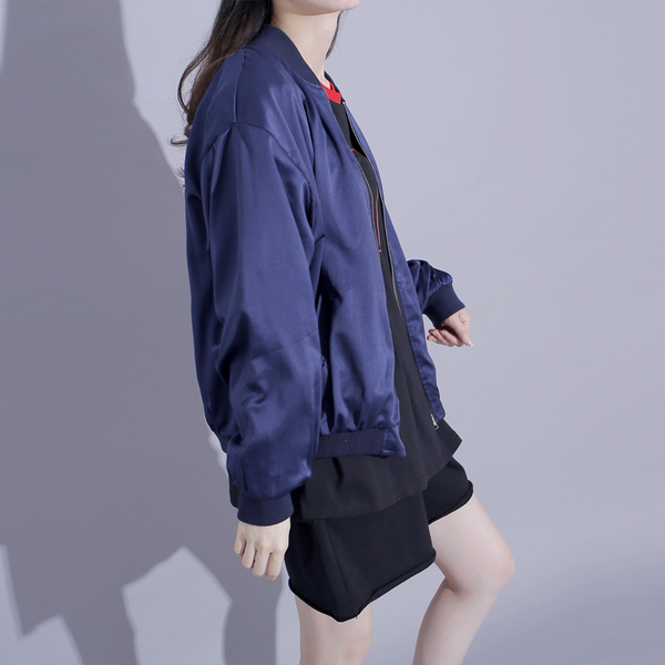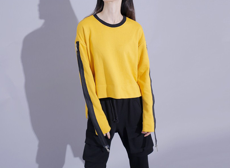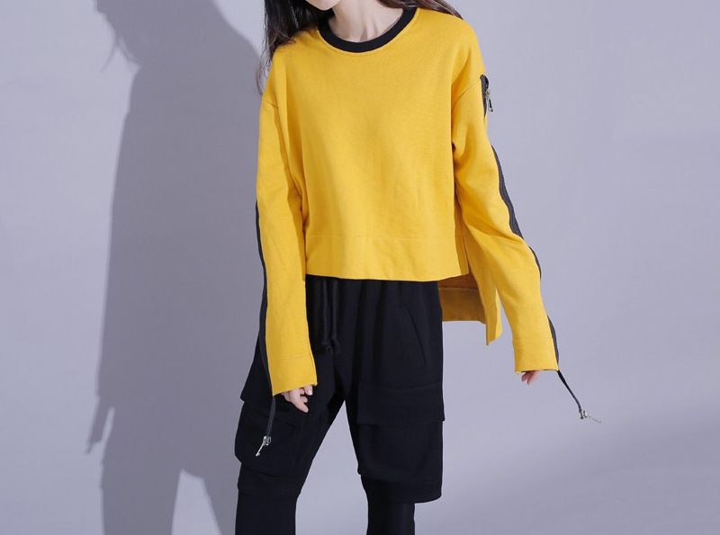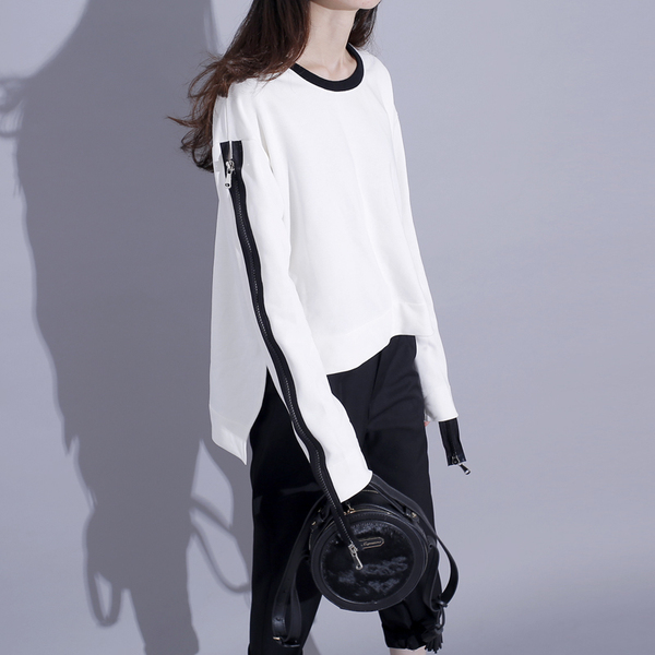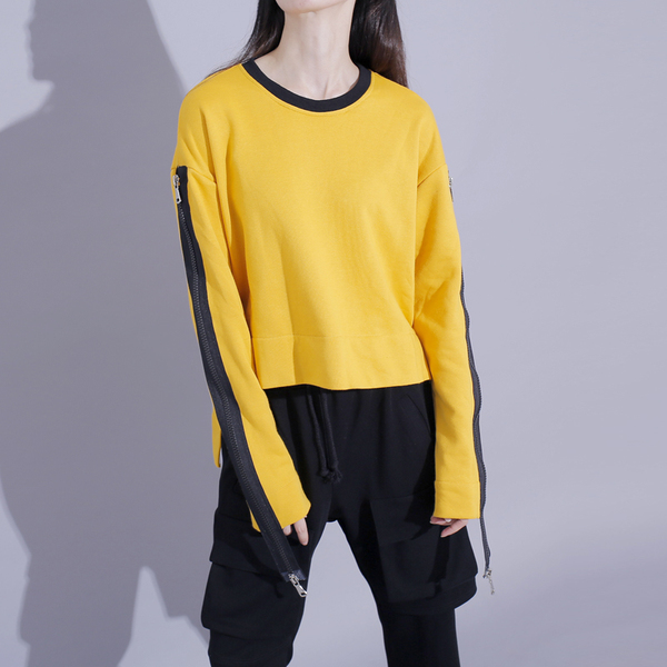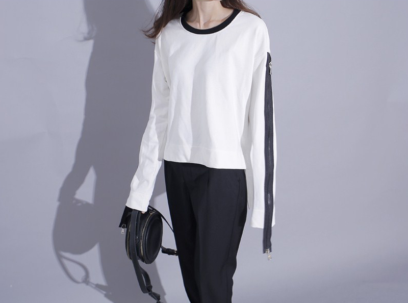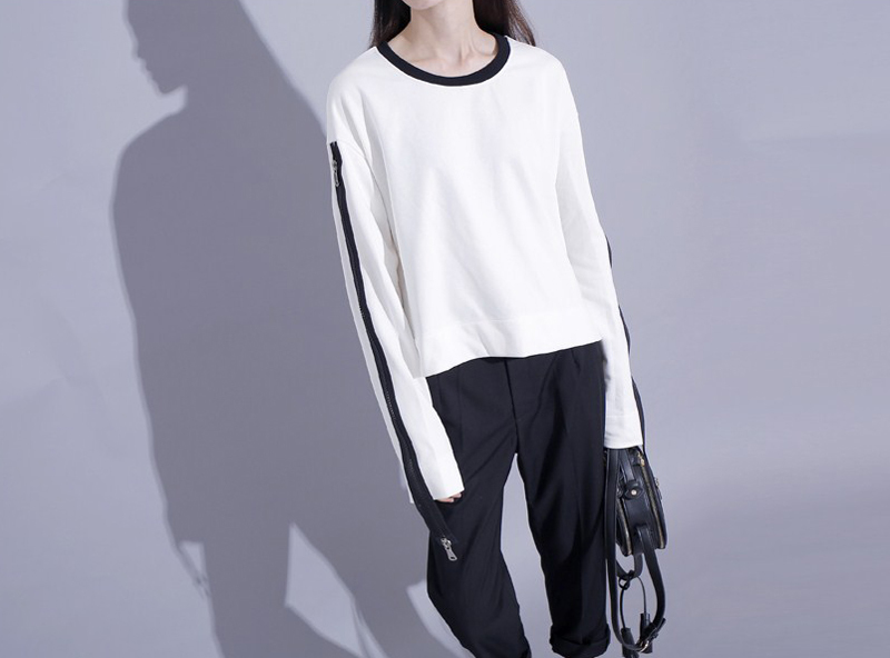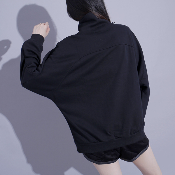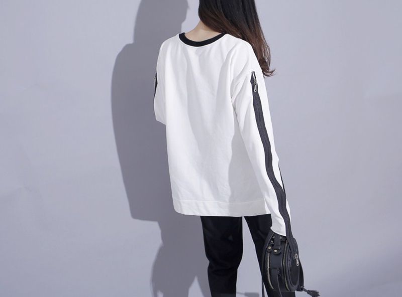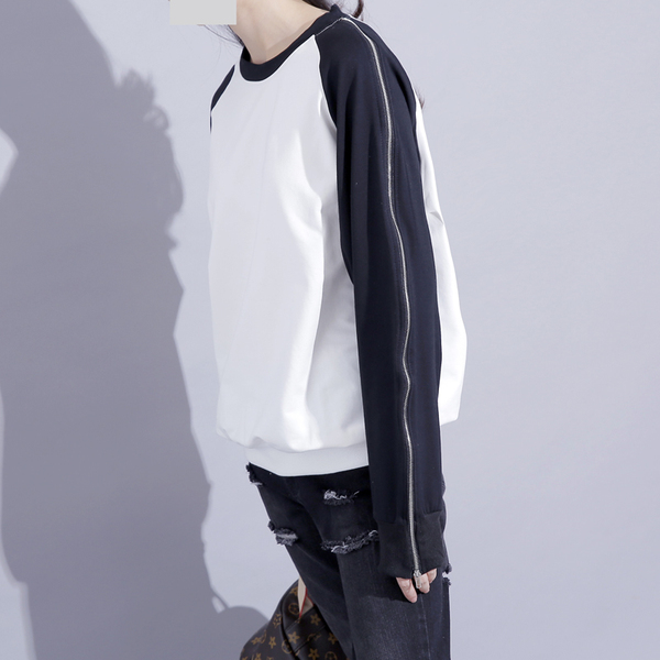 秋季港风学院风肩膀拉链设计拼色卫衣