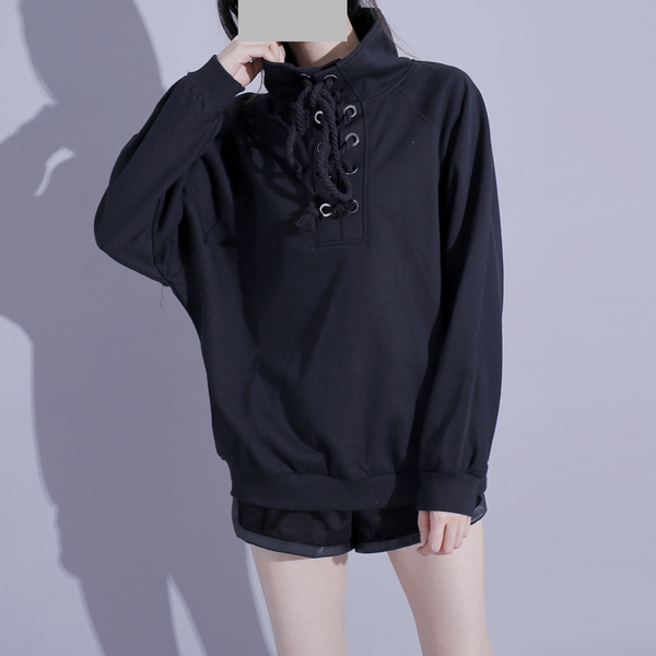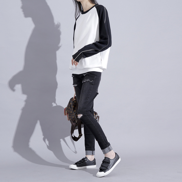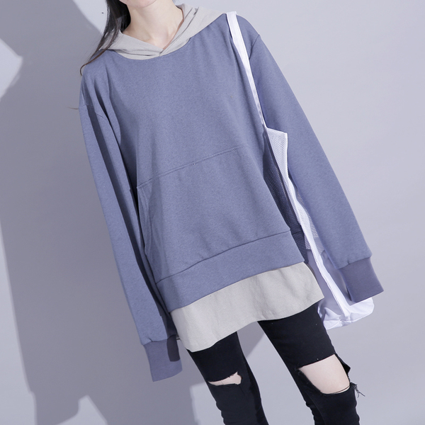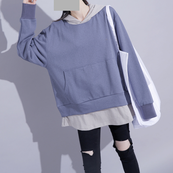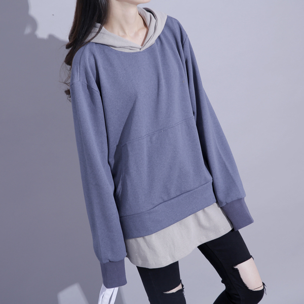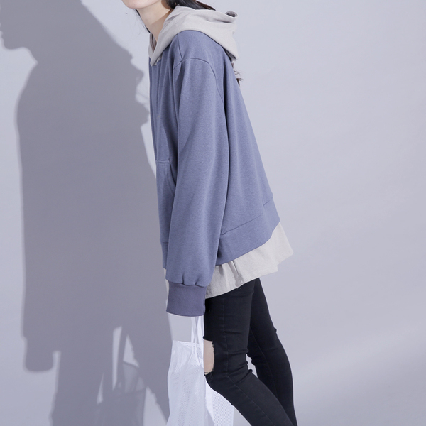港风秋季拼接假两件卫衣