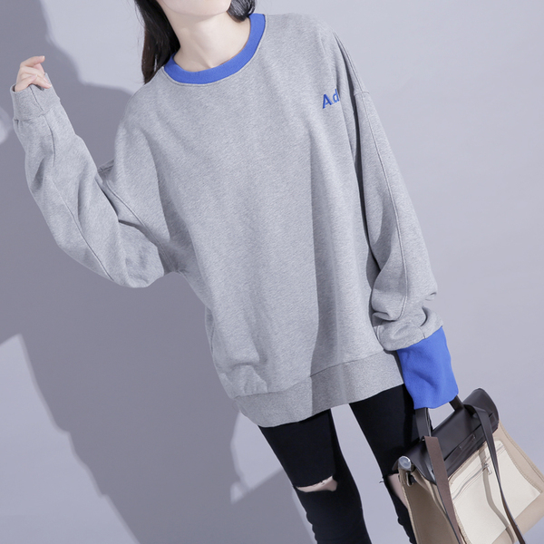 定制款撞色罗纹设计长袖卫衣