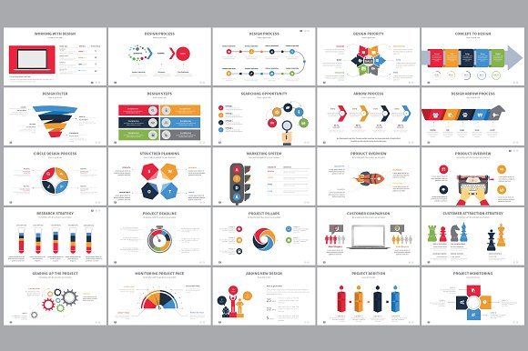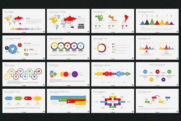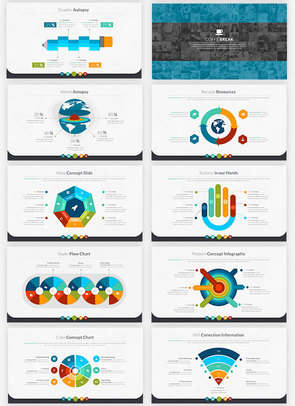 100页商务扁平化彩色图形图表PPT模板