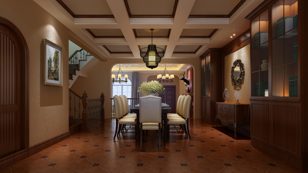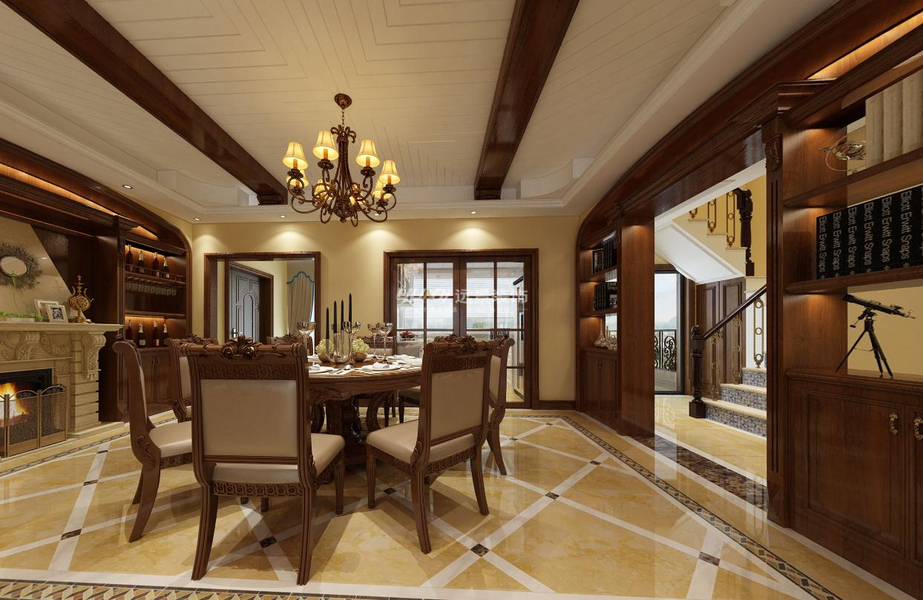 江南新城438㎡美式新古典装修效果图-金舍装饰-石家庄装修