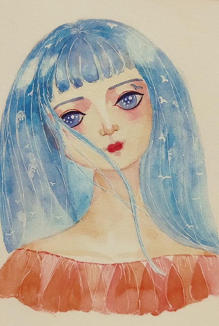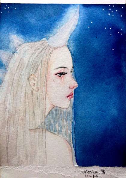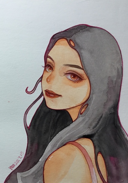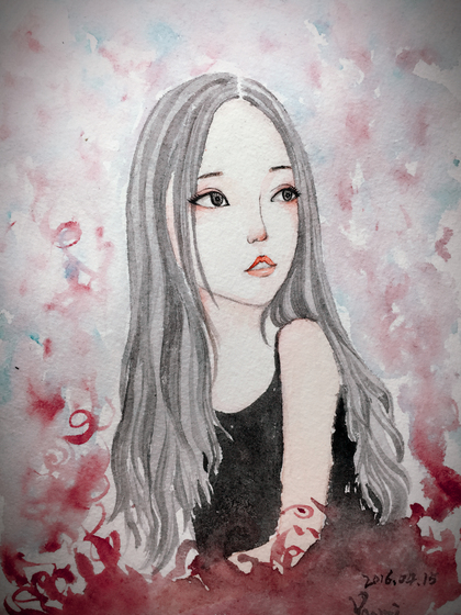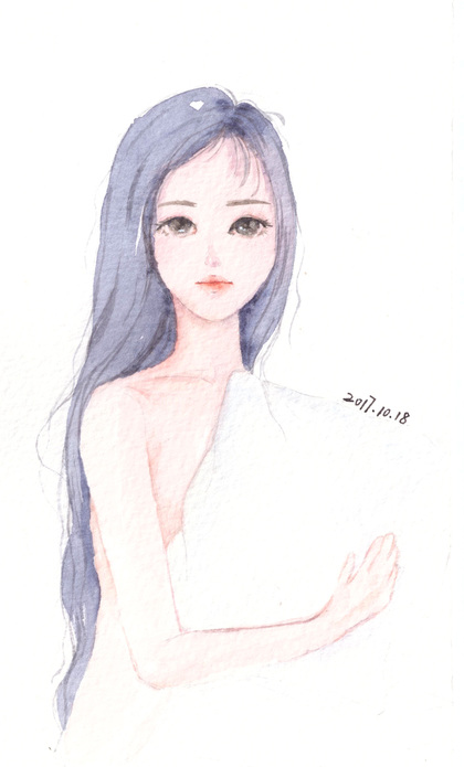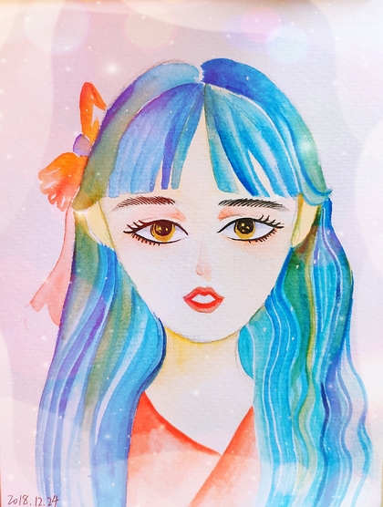 水彩 原创 手绘 女生头像 手绘少女头像 绘画过程画画