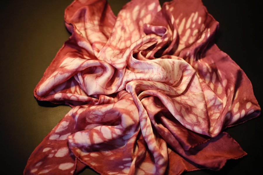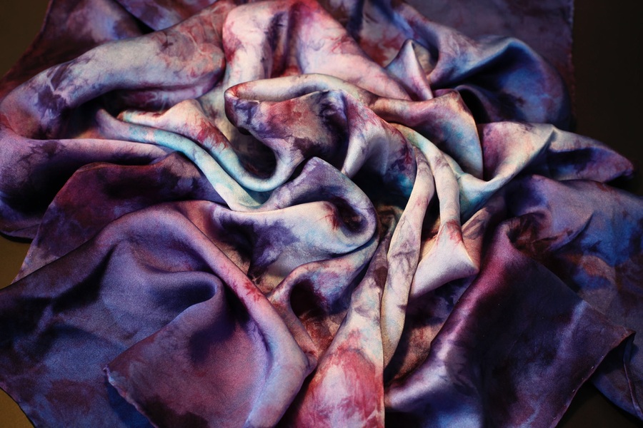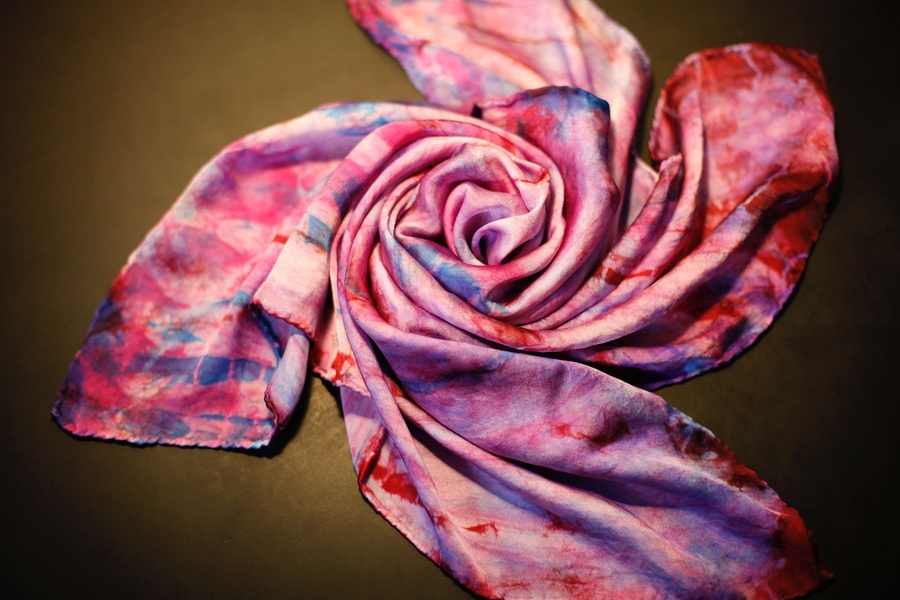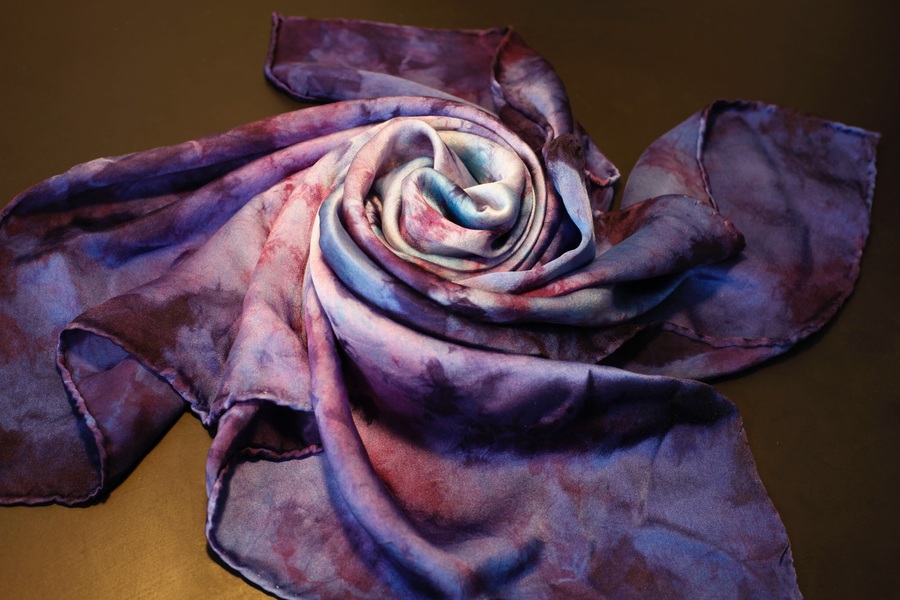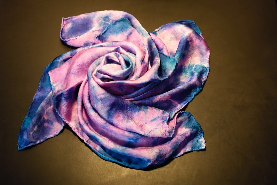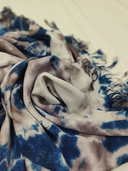植物染/套色扎染围巾(靛蓝、紫灰)