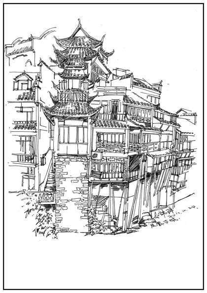 阿王速写钢笔画建筑风景速写
