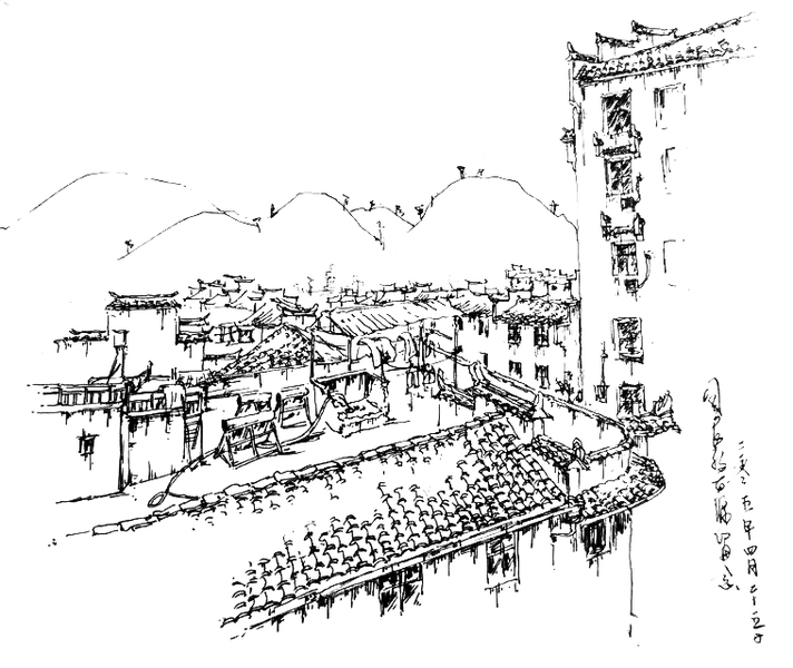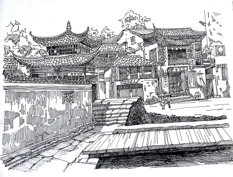 钢笔风景速写