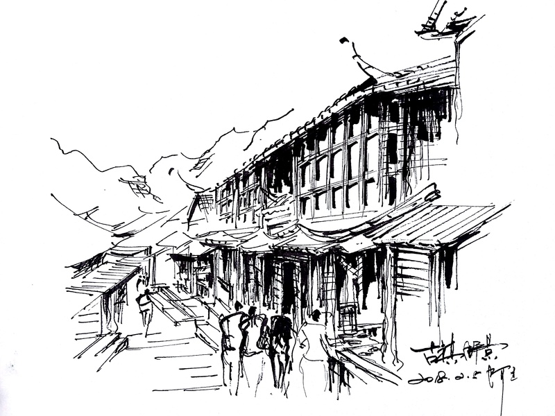 速写阿王建筑风景钢笔画