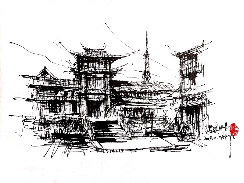 速写建筑钢笔画速写阿王速写