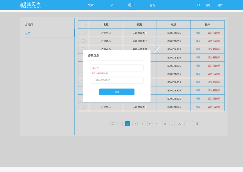 后台界面(蓝贝壳)