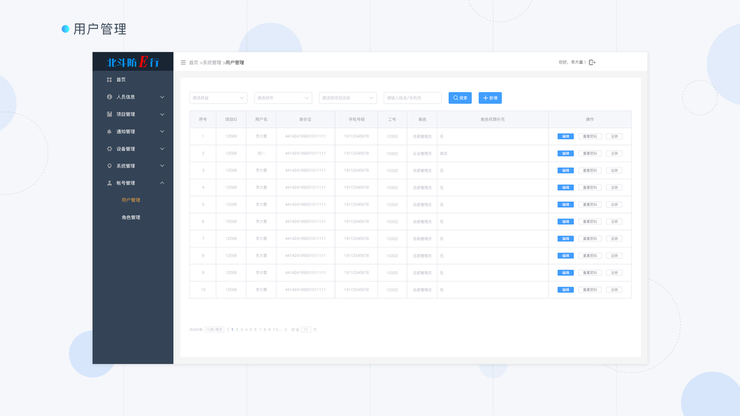 《北斗防E行》后台管理系统