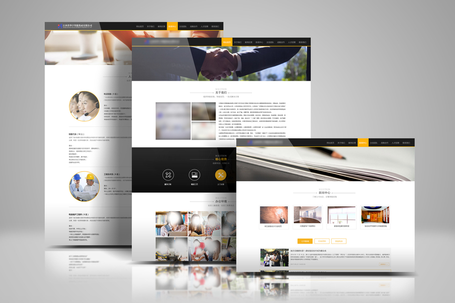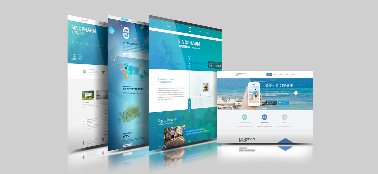 网页,瀑布流响应式,扁平化简约风格,全屏满屏宣传下载页面及合作中心