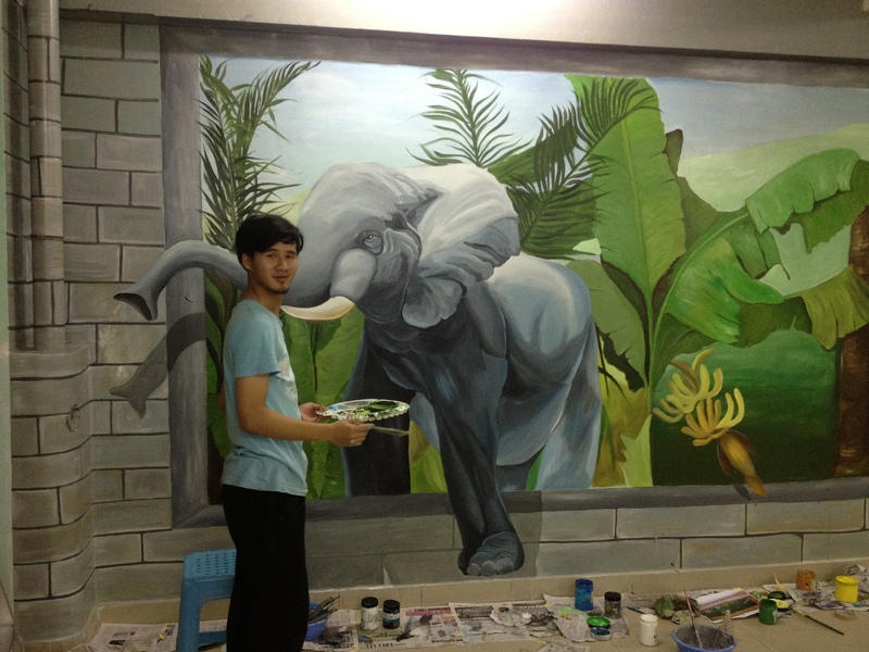 珠海壁画 原创 香洲华南名宇幼儿园3D《热带雨林》