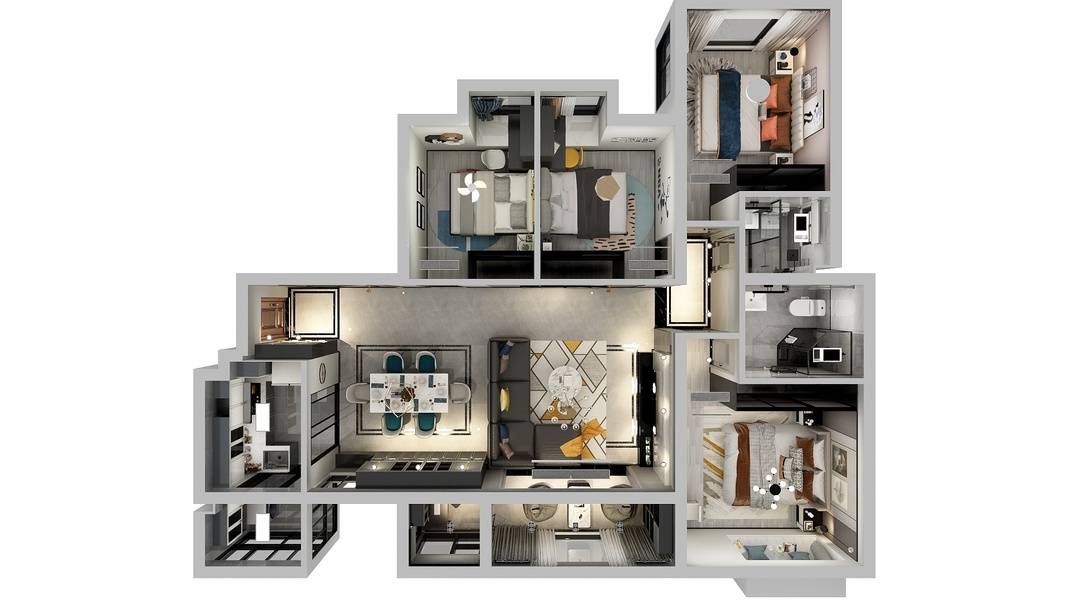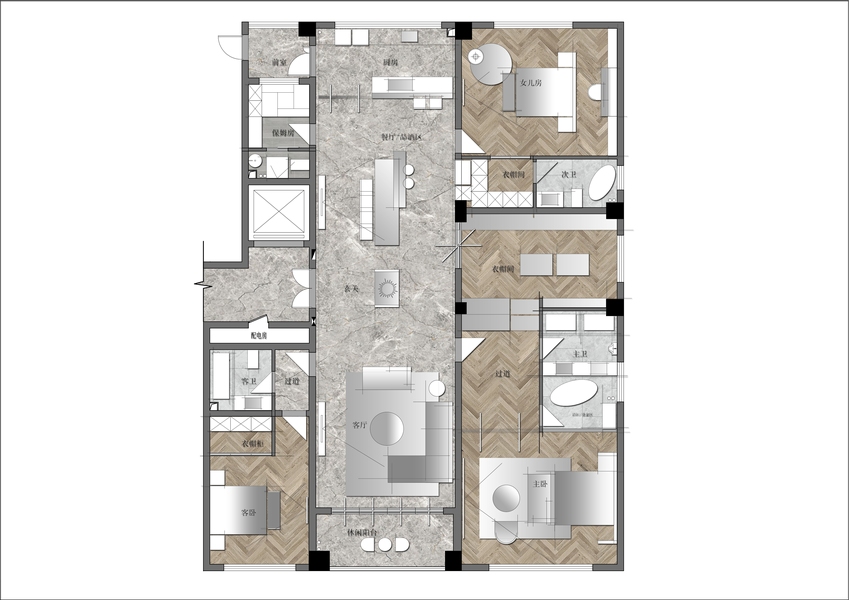 四川岳池凰腾龙玺(149平方复式现代简约四居室)