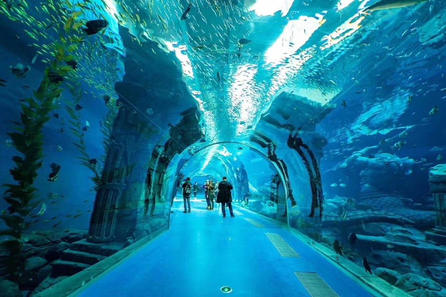 哈尔滨波塞冬海洋馆大堡礁美人鱼表演缸体景观