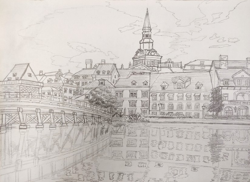 大幅手绘|傍晚的欧洲小镇(1)