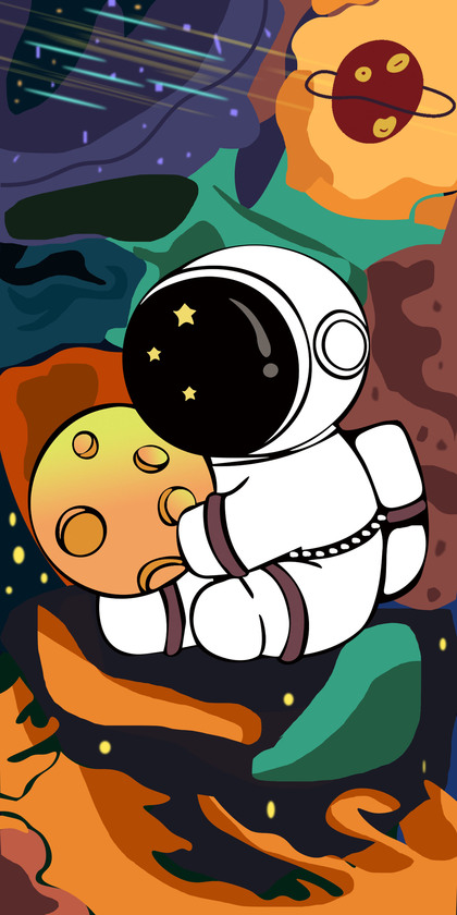 卡皮巴拉水豚萌萌IP卡通航空航天宇航员星空星球插画