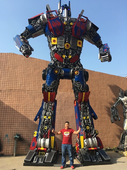 用废旧汽车零件打造的变形金刚