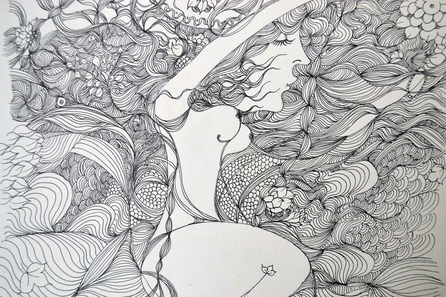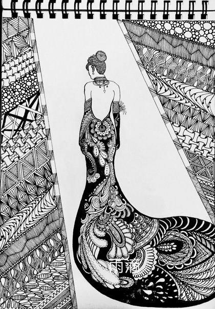 黑白条纹 插画 装饰画 线描 彩色 点线面