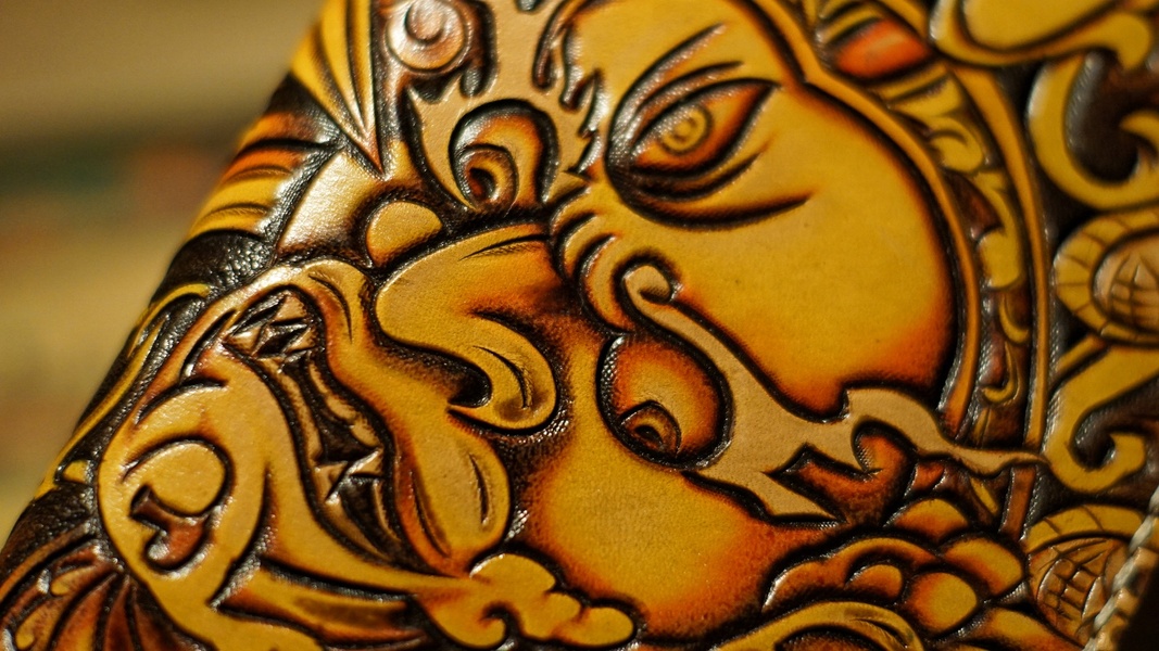 纯手工皮雕【大黑天】植鞣皮 手包 钱包