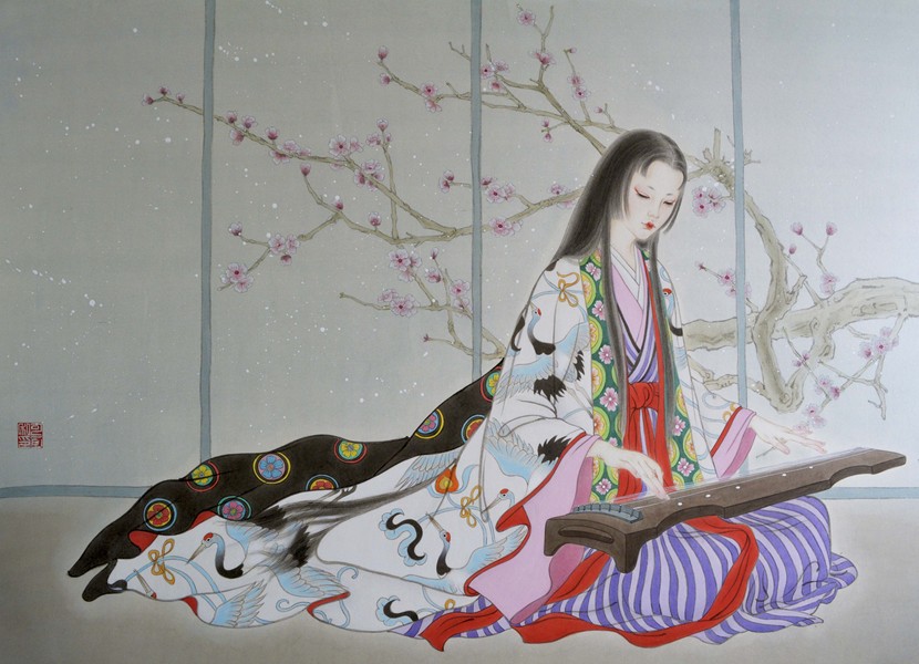 浮世绘练习——和服柜子盖板水彩绘画习作