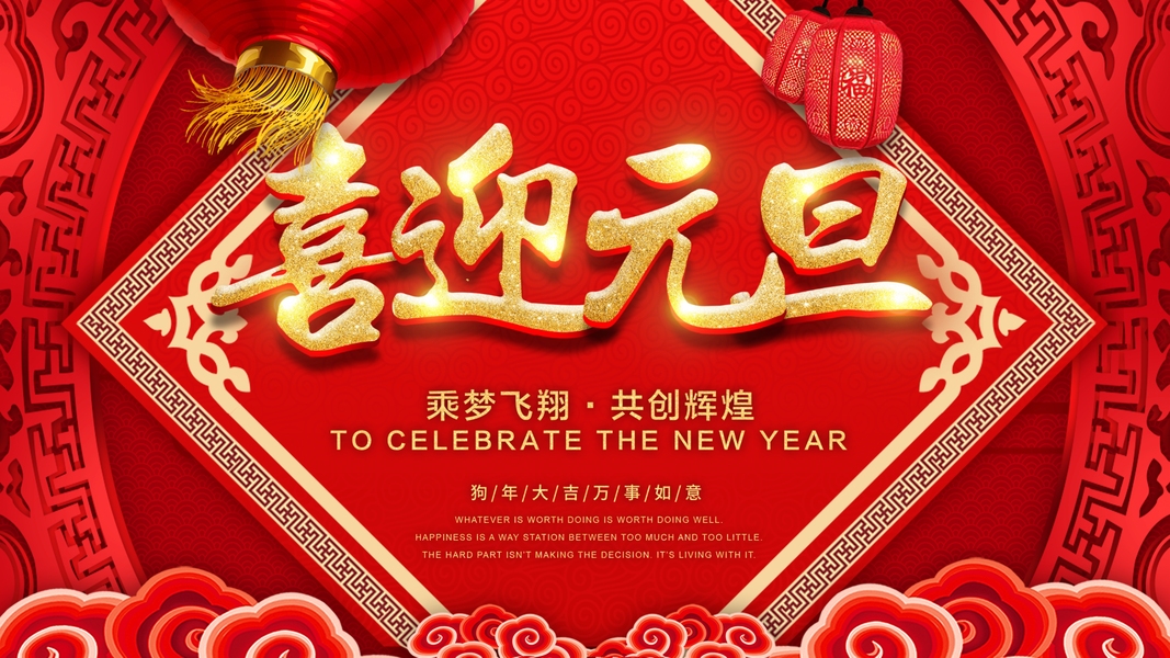 红色喜庆元旦快乐晚会开场快闪动画PPT模板
