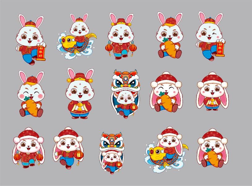 卡通兔子 新年兔子 兔年插画 国朝兔子