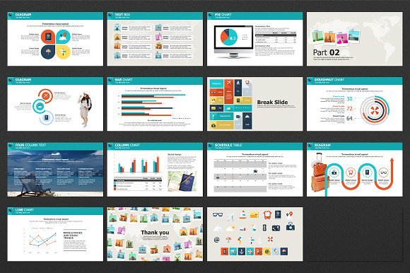 120多页卡通图形商务通用PPT模板
