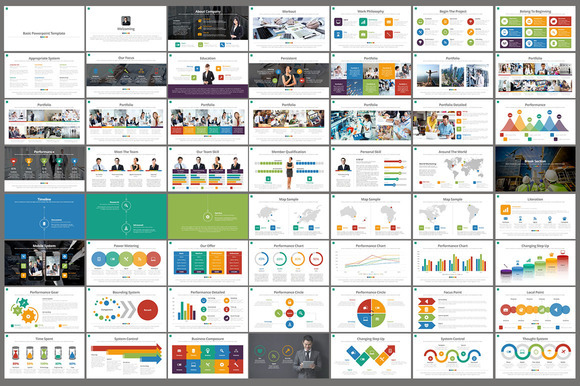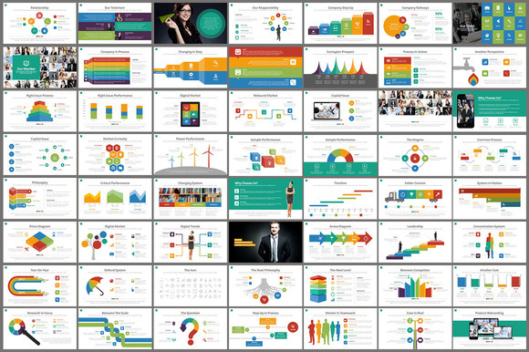 180页多色搭配图形图表PPT通用模板
