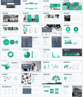 简约蓝绿色商务贸易精美图表企业通用动画PPT模板