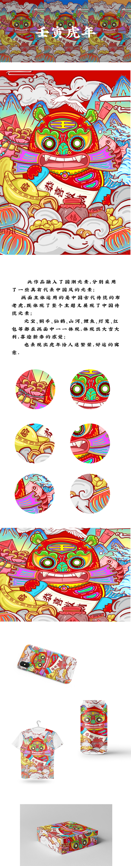 虎年贺岁图2022年印花图案设计老虎醒狮图