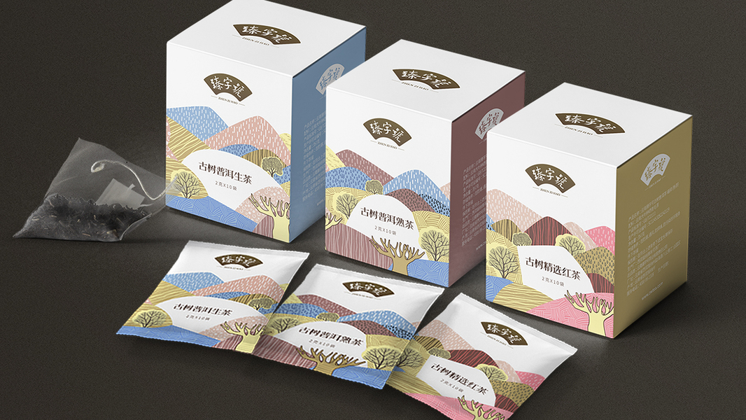 【臻字号】插画风格茶系列包装设计|摩尼视觉原创