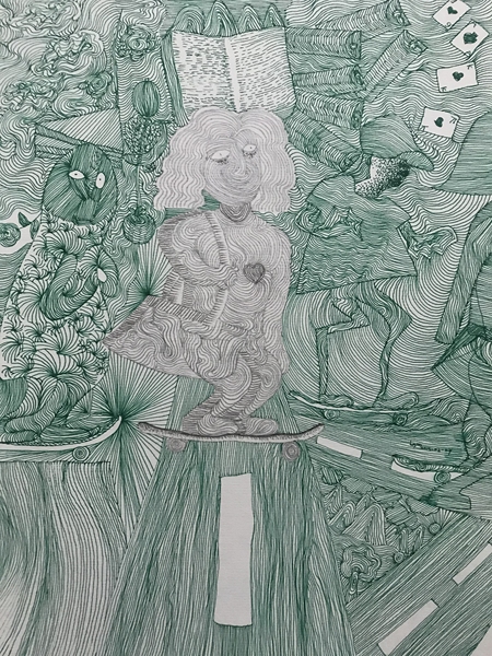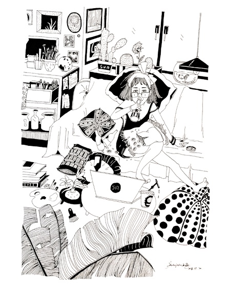 黑白线描人物插画